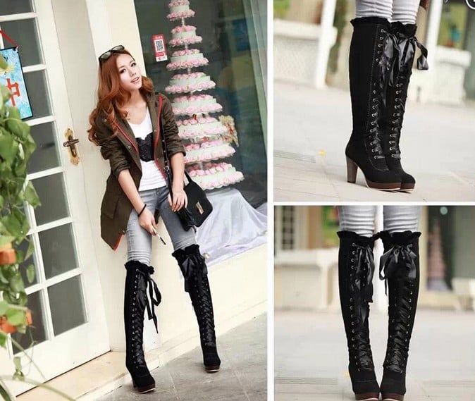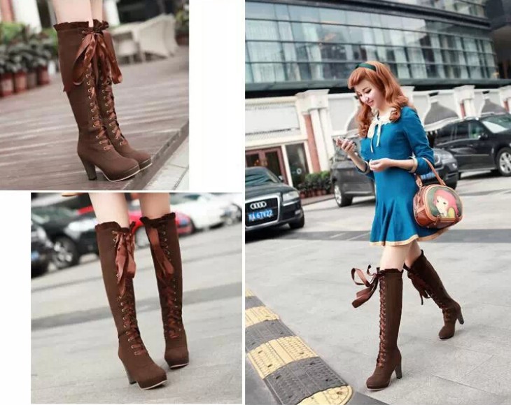 Women fashion sexy bowknot lace high-heeled boots